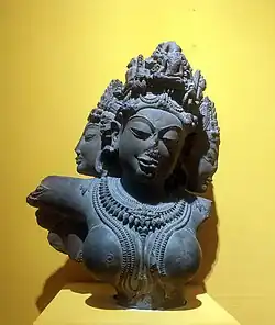 The origin of Tārā is unclear and remains a source of inquiry among scholars. Mallar Ghosh believes her to have originated as a form of the goddess Durga.[17] Tārā is worshiped both in Buddhism as well as in Shaktism (Hinduism) as one of the ten Mahavidyas. According to Beyer, the enlightened feminine makes its first appearance in Mahayana Buddhism as Prajñāpāramitā Devi, the personified Perfection of Wisdom, who is also called mother of Buddhas.[18]
