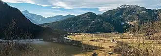 The name of the area derives from a glacial lake near the settlement of Zgornje Jezersko that started to disappear after an earthquake in 1348. However, it was still described by Johann Weikhard von Valvasor in 1689 as a large lake.[2] It gave the area its German name Seeland (literally "lake land", first recorded as Seelant in 1496), and its Slovene equivalent Jezersko, which came into use at the end of the 19th century. A document from 1391 mentions the church of "St. Oswald by the Lake" (Sv. Ožbolt pri Jezeru).