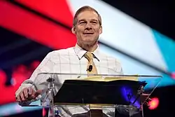 Jordan is a two-time NCAA national champion wrestler and a former college wrestling coach. In Congress, Jordan helped start the right-wing populist House Freedom Caucus, serving as its first chair from 2015 to 2017, and as its vice chair since 2017. Jordan was a prominent critic of Speaker of the House John Boehner, who resigned under Freedom Caucus pressure in 2015.[1][2] He was the ranking member of the House Oversight Committee from 2019 to 2020, when he left to become the ranking member of the House Judiciary Committee, of which he became chair in 2023. He is the dean of Ohio's GOP delegation to the House of Representatives, since January 2023 after the loss of fellow Republican Steve Chabot.