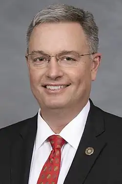 James Perry (born c. 1972) is a Republican politician who was a member of the North Carolina State Senate, representing the 7th district.[2] He was appointed to the state Senate on January 31, 2019 by Governor Roy Cooper, to replace Louis Pate, who resigned for health reasons.[3] He was chosen as Majority Whip for the 2021-2022 Biennium.[4] Perry was challenged in the 2020 Republican Primary. He won the primary with 66% of the vote and won 86% of the vote in his home county of Lenoir. At the general election he defeated his opponent by 11 points.