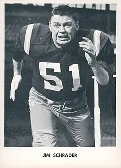 James Lee Schrader (June 27, 1932 – January 16, 1972) was an American professional football player who was a center and tackle in the National Football League (NFL) for the Washington Redskins and the Philadelphia Eagles from 1954 to 1964.