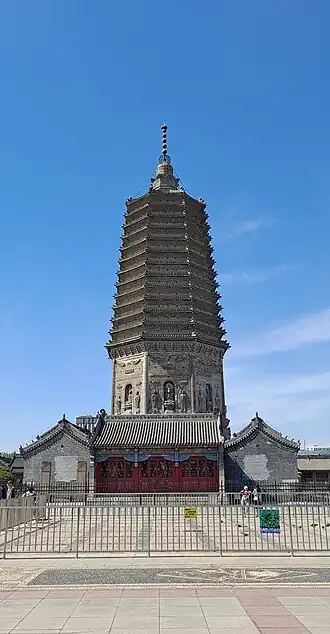 Guangji Pagoda (traditional Chinese: 廣濟寺塔; simplified Chinese: 广济寺塔): The Guangji Pagoda is located in Guta Park situated at the heart of Jinzhou. The 72-meter-tall tower is an example of beautiful Liao-style architecture, with thirteen levels in an octagonal shape. A quiet temple beneath completes the ancient Chinese setting. Visitors will see locals gather for early morning rituals, exercise and various other activities. There is no fee for admission to the temple grounds.