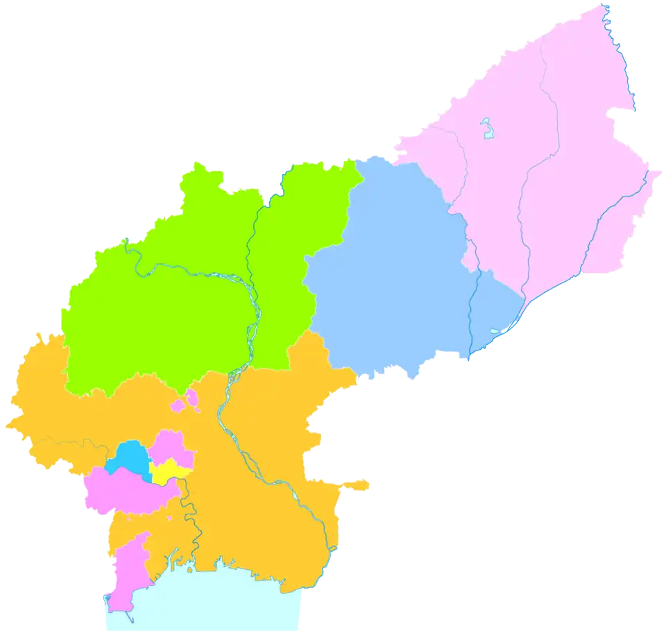 The above eight are subdivided into 43 towns, 69 townships, and 1680 villages.