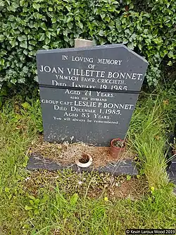 - ^ England & Wales, National Probate Calendar (Index of Wills and Administrations), 1858-1995 for Joan Villette Bonnet