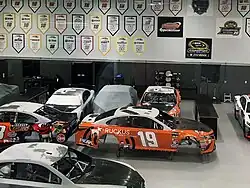 Gibbs founded the team in 1991 after exploring opportunities with Don Meredith, who currently serves as the team's Executive Vice President.[6] In 1997, Gibbs' son J. D. Gibbs was named team president.[7][8] In 1998, the team began building its facility in Huntersville, North Carolina.[8] The team expanded to a two-car operation in 1999 with Tony Stewart's No. 20 Home Depot-sponsored car, then in 2005 added the No. 11 FedEx-sponsored car driven by Denny Hamlin and owned by Coy Gibbs.[9] For the 2015 season, the team added the No. 19 car driven by Carl Edwards, who followed former Roush Racing teammate Matt Kenseth to JGR.[10]