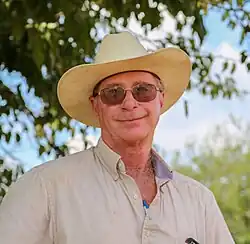 Joe Heim (born 1949) is a horse trainer and clinician residing in Thackersville, Oklahoma. He trains primarily Quarter Horses in various disciplines of western riding, including reining and cutting. He was inducted into the NCHA Rider Hall of Fame[3] and is most notable for training and showing Docs Okie Quixote to win the 1983—1984 NCHA Triple Crown which included winning the 1983 NCHA Futurity, 1984 NCHA Derby and 1985 NCHA Super Stakes.[4] Docs Okie Quixote was a 1980 AQHA stallion sired by Doc Quixote and out of the mare Jimmette Too by Johnny Tivio. He sired only one crop of foals before he died in 1985.[5] His Triple Crown earnings totaled US$335,095.00, and his NCHA Lifetime Earnings totaled US$599,109.00.[6]