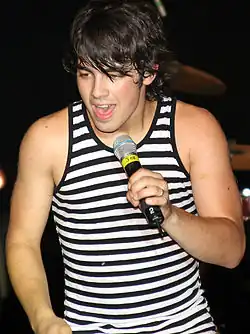 Joseph Adam Jonas (born August 15, 1989)[1] is an American singer, songwriter, and actor. He rose to fame as a member of the pop rock band the Jonas Brothers, alongside his brothers Kevin and Nick. The group released their debut studio album It's About Time through the Columbia label in 2006. After signing with Hollywood Records, the group released their self-titled second studio album in 2007, which became their breakthrough record. The band became prominent figures on the Disney Channel during this time, gaining a large following through the network: they appeared in the widely successful musical television film Camp Rock (2008) and its sequel Camp Rock 2: The Final Jam (2010) as well as two of their own series, Jonas Brothers: Living the Dream (2008–2010) and Jonas (2009–2010).