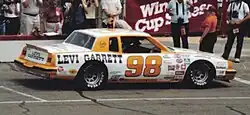 Ruttman made his NASCAR Grand National Series (now known as the NASCAR Cup Series) debut in 1963 at Riverside International Raceway, finishing tenth at the Winston Western 500.[3] He drove in three more Series races between 1964 and 1980, while racing local tracks in between. Ruttman caught a big break in 1981 when J.D. Stacy, who had just bought Rod Osterlund's team, hired him to take over for Dale Earnhardt, who left the team mid-season to join Richard Childress Racing.[4] Ruttman went on to run a full Series schedule from 1982 through 1984, 1986, and 1991. His best season was in 1983, when he finished 12th in points. During his twenty years in the Sprint Cup Series he had sixty top-ten finishes and nineteen top-fives.[5] He came very close to winning a race at Richmond in 1982, but a late power-steering failure sent his car into the wall and gave Dave Marcis the victory. He also picked up a runner-up finish at the same track, finishing five seconds behind Kyle Petty in 1986, although, had Ruttman not been collected in a final-lap accident, he would have actually won.