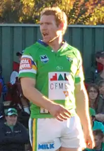 Joel Monaghan (born 22 April 1982) is an Australian former professional rugby league footballer who last played for the Castleford Tigers in the Super League. An Australian international and New South Wales State of Origin representative centre or winger, he previously played in the NRL for the Canberra Raiders and the Sydney Roosters.[2][3]