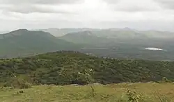 Jogimatti is the highest point in the district, at 3,803 feet (1,159 m) in elevation,[4] and one of the coolest places in the state. The vegetation is dry deciduous forest and scrub. It is rich in wildlife[5] and until the 1950s was tiger habitat, but is threatened by encroachment from farms and from nearby windmills,[6] which endanger birds. The tigers and sloth bears are reported to have almost died out, and the medicinal plants found in the reserve are endangered.[7] A proposal has been made to declare it a wildlife refuge.[2][7] Jogimatti was declared as sanctuary in 2018.[8]