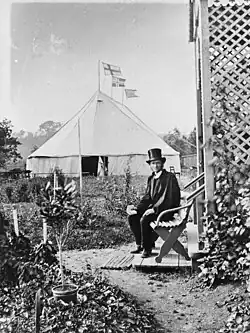 ![]() Johan Storjohann (c.1875/1880) outside his missionary tent at Sagene, Christiania | |