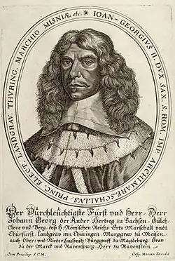 Johann George II (31 May 1613 – 22 August 1680) was the Elector of Saxony from 1656 to 1680. He belonged to the Albertine branch of the House of Wettin.