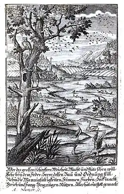 Zorn was born in Bieswang near Pappenheim and educated in philosophy at Altdorf (1716) and Jena (1717) before becoming a vicar in Biensweng from 1723. He then served as a pastor in Bavaria. Zorn who was heavily influenced by the work, far ahead of its time, of the ornithologist Ferdinand Johann Adam von Pernau (1660–1731), and aimed to proclaim the divine power to his readers. His comments are very fair, and he is one of the first to observe the role of the colour of birds or eggs in their camouflage. He played a significant role in the dissemination of information on bird behavior in Germany although scientific ethological did not advance much until the 20th century. His motivation for first-hand observation however lay in the idea that God revealed Himself in the book of nature and that an investigation of birds would lead to an admiration. In the first volume he examined how the physical structure and the suitability to specific lifestyles indicated intelligent design. He then examined nest building, eggs, and migration. He wrote that migrating birds had a moral lesson in that the earth was not theirs forever and that one must do God's work while one is here. Zorn claimed that the pagan Egyptians worshipped birds and waged wars for their sake. Zorn noted the role of insectivorous birds in pest reduction. He also used an example population calculation of a bird with six chicks growing by geometrical progression over generations.[1][2]