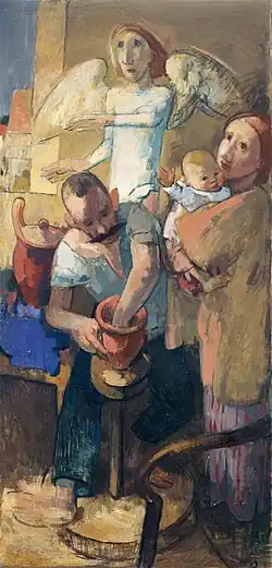 In 1920, he went to the pottery workshop at the Bauhaus in Dornburg. His primary instructors there were Gerhard Marcks and Max Krehan. The following year, he married Lydia Foucar (1895–1980), a prospective student whom he had met in Munich the year before.[1][2] They had four children together, which brought their studies to an early finish, as they had to establish a family business to provide income.