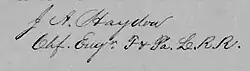 In 1868, Haydon became chief engineer of the Frederick and Pennsylvania Line Railroad in Frederick, Maryland. Haydon completed construction of the railroad in June, 1872.[Minutes 1][19]