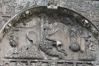 Symbolic carvings on the tomb of John Byres of Coates, Greyfriars Kirkyard