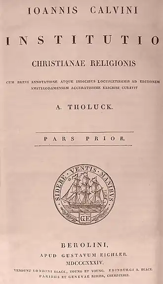 - ^ * De Greef, Wulfert (2008), The Writings of John Calvin: An Introductory Guide, Louisville, Kentucky: Westminster John Knox Press, p. 197, ISBN 978-0-664-23230-6.