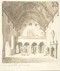 His first important published work was his Specimens of Ancient Sculpture and Painting, published in parts between 1780 and 1794.[4] In his introduction to the Specimens Carter wrote that, "having explored at different times various parts of England for the purpose of taking sketches and drawing of the remains of ancient sculpture and painting, his aim is to perpetuate such as he has been so fortunate as to meet with by engraving them." While the Specimens was in progress, Carter also published Views of Ancient Buildings in England (drawn and engraved by himself) in six volumes (London, 1786–93).[5] In 1785 he began another extensive work, The Ancient Architecture of England (1795–1814).[6] John Summerson wrote that, in this work, "details of Gothic buildings are more sympathetically represented than in any previous books."[7] The chronological arrangement of the architectural examples was an important feature and prepared the way for subsequent writers on the sequence of styles;[1] referring to Gothic architecture as "Pointed architecture", he divided it into phases, such as "First Pointed" and "Second Pointed", classifications which remained in use well into the 19th century.[7] A new and enlarged edition of the Ancient Buildings was published in 1845 (two parts, folio) by John Britton.[1]