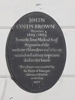 Upon Browne's death plans were made by Messrs Davenport to erect a plaque in his memory on the house where he had lived. The plaque was designed by the lettering craftsman William Sharpington[2] and unveiled by the Mayor of Ramsgate on 8 May 1973. Dr N.M. Goodman recorded the event in The Lancet.[3]
