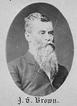 John Evans Brown (16 February 1827 – 9 July 1895) was a 19th-century Member of Parliament in New Zealand.[1] Born in Pennsylvania, he came to New Zealand after spending time in Australia, where he was a farmer and US Consul. He farmed in Canterbury, where he was known as "Yankee" Brown. Three of his brothers in law, through his first wife, served as his fellow Members of Parliament. He married a second time, as his first wife died young, and moved back to the United States. On his father's land in Asheville, he came to considerable wealth due to the mining of mica.