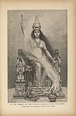 An illustration from Goddess of Atvatabar (1892), published by J. F. Douthitt