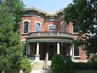 John Hamilton House, also known as the Hamilton House, is a historic home located at Shelbyville, Shelby County, Indiana. It was built in 1853, and is a 2+12-story, rectangular, Italianate style brick dwelling. It has a slate roof and sits on a limestone block foundation. The front facade features segmental arched windows, and two two-story projecting polygonal bays flanking a semi-circular one-story porch supported by Doric order columns added about 1910.[2]: 2