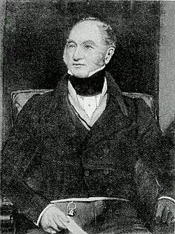 His father, also named John (1745-1806), who made successful investments in the Low Moor ironworks, was an attorney at Horsforth and Land Steward to the Spencer-Stanhope family. His father and grandfather had also been Stewards and Clerk to the Stanhope family of Horsforth.[1] The younger John Hardy was educated in Switzerland near Bienne, where his contemporaries included Lord Lyndhurst and Daniel O'Connell. He married in 1804 Isabel, daughter and heiress of Richard Gathorne. Their eldest son John was created a Baronet in 1876 and their third son Gathorne became a prominent Conservative politician and was created Earl of Cranbrook in 1892. Hardy died at Dunstall Hall, Staffordshire on 29 September 1855.