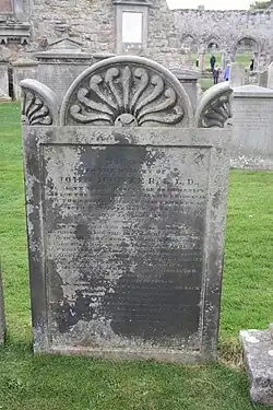 He died at St Andrews on 18 January 1837, and is buried in St Andrews Cathedral churchyard.[1]