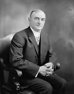 In 1916, Nolan introduced H.R. 7625, which would have established a $3 per day minimum wage for federal employees. It was endorsed by the AFL and the National Federation of Federal Employees,[18] but the bill's opponents in the House kept it from coming to a vote.[19] In 1918, U.S. Senator Hiram Johnson co-sponsored the legislation,[20] and it became known as the Johnson-Nolan Minimum Wage Bill. It passed the House that September, but was stalled in the Senate Committee on Education and Labor.[21] It was reintroduced two years later and passed in both the House and Senate,[22] but when it went to conference it was filibustered by Southern Democrats[23] who opposed it because it would have paid African American employees the same as white employees.[24]