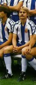 The first half-season notwithstanding, Lauridsen never featured in less than 30 matches for Español – known as Espanyol from 1995. He contributed with a career-high 41 appearances in the 1986–87 campaign as his team finished in a best-ever third in La Liga,[1] and also helped it reach the final of the following year's UEFA Cup – eight games, 304 minutes, two goals – which ended in a penalty shootout defeat against Bayer 04 Leverkusen; he played in more than 250 competitive matches for the club during his seven-year spell, as one of only two foreign players – the other being Cameroon's Thomas N'Kono.[2]