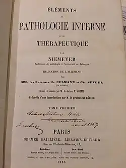 His book of internal pathology, when attending Laval University Medical School, April 4, 1867.