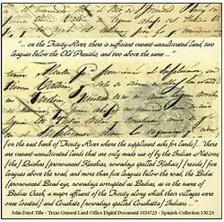 - ^ "Abst 26 Nacogdoches County". Texas General Land Office. Retrieved 18 October 2011.