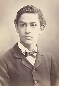 Monash was born in 58 Dudley Street,[2] West Melbourne, Victoria,[3] to Jewish parents, both from Krotoschin in the Prussian province of Posen (now Krotoszyn, Poland). His birth certificate records his date of birth as 23 June 1865, but that is probably a mistake, because he was almost certainly born on 27 June.[4] He was the first child of Louis Monash and his wife Bertha, née Manasse, who had arrived in Melbourne on the Empire of Peace on 5 June 1864.[5] The family name was originally spelt Monasch and was pronounced with the emphasis on the second syllable.[6]