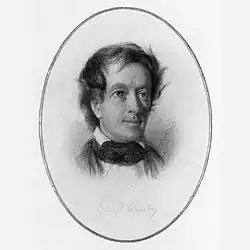 Although admitted to the bar in 1816, he was much more interested in literature and politics than law. He associated with the focal point of Baltimore's literary community, the Delphian Club.[8] Kennedy's first literary attempt was a fortnightly periodical called the Red Book, published anonymously with his roommate Peter Hoffman Cruse from 1819 to 1820.[9] Kennedy published Swallow Barn, or A Sojourn in the Old Dominion in 1832, which would become his best-known work.[10] Horse-Shoe Robinson was published in 1835 to win a permanent place of respect in the history of American fiction.