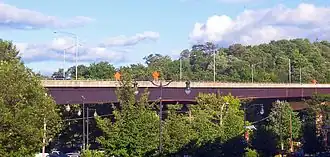 The John T. Loughran Bridge carries U.S. Route 9W (US 9W) over Rondout Creek between Kingston and Port Ewen, New York, United States. It also crosses over Ferry Street on the Kingston side. It is located just downriver from the historic Kingston-Port Ewen Suspension Bridge, which carried 9W until the Loughran Bridge was constructed. It is just upriver from where the Rondout empties into the Hudson River.