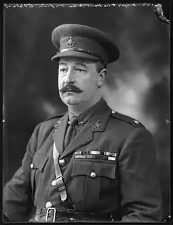 Following the war, the 3rd Royal Sussex became a reserve battalion in 1908 and Tufton was appointed Major, serving at the battalion's depot at Chichester.[11][12] At the outbreak of the First World War he volunteered for active service, moving with the battalion to Dover initially and then to France in February 1915 where he was appointed Assistant Provost Marshal (APM) attached to 6th Division headquarters with the rank of major. He served throughout the war, the division seeing action on the Western Front from the Second Battle of Ypres in 1915 through to the Hundred Days Offensive and attacks on the Hindenburg Line in 1918.[1][12] He was mentioned in dispatches and awarded the Distinguished Service Order (DSO) in the 1916 New Year Honours and received the Ordre de Léopold in 1918.[1][2]