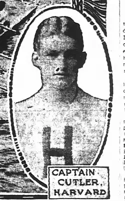 Cutler was a prominent quarterback for the Harvard Crimson football team of Harvard University. He was also a member of the rowing team.[3][4]