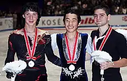 From left: Daisuke Takahashi (2nd), Stéphane Lambiel (1st), Johnny Weir (3rd).