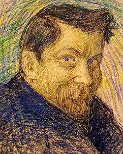 In 1898, he enrolled at the Academy of Fine Arts, Helsinki, where he studied with Eero Järnefelt.[1] He began participating in shows held by the "Helsinki Society of Artists" and was one of a large group of artists chosen to represent Finland at the Exposition Universelle (1900). It was then that he first became interested in impressionism and pointillism.[2] From 1902 to 1904, he was a student at the University of Helsinki, graduating with a degree in drawing.