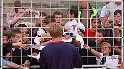 Despite missing the season's last Premiership game against Bath, Wilkinson made the England squad for the summer tour and scored 5 points in the first test's record 58–10 loss to South Africa.[26][27] He scored 17 points in the second test, which England lost 55–22.[28] In the first of three warm up tests before the 2007 Rugby World Cup in France, Wilkinson had an impressive game, scoring 17 points (seven conversions and a penalty) in the 62–5 demolition of Wales.[29]