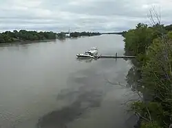 In addition to the river, the bridge spans Route 223 (rue Richelieu) on the left bank and Route 133 (chemin des Patriotes) on the right bank of the Richelieu River. Access roads connect these two roads to the bridge.