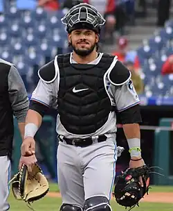 In 2020 he batted .226/.280/.344, and was 2nd in the NL with 4 passed balls.[17] He had the lowest framing percentage of all major league catchers.[38] In 2021, he batted .244/.283/.342 in 92 games. After July he was moved to left field, where he played for the majority of August and September.