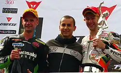 At the conclusion of the Senior TT, Lorenzo then took part of the garlanding ceremony, in which he bestowed garlands on third placed Bruce Anstey, second placed Ryan Farquhar and winner Ian Hutchinson, rounding off Hutchinson's historical five race wins at the 2010 TT meeting.[111][112]