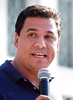 Huizar's former aide, George Esparza pleaded guilty in the investigation. He facilitated bribes from Chinese real estate developers to a council member, known to be Huizar. Specifically Developer C, now known to be Shenzhen New World Group, totaling over one million dollars.[38] On June 23, 2020, Huizar was arrested and taken into federal custody at his Boyle Heights home on racketeering charges.[39] If convicted, he faced up to 20 years in prison.[40] On January 20, 2023, Huizar pleaded guilty to racketeering and tax evasion, as he used Los Angeles's discretionary permit system to extort at least $1.5 million from real estate developers.[41][42] On January 26, 2024, he was sentenced to 13 years in federal prison.[43] On October 7, 2024 he reported to prison to begin his prison sentence at Federal Correctional Institute Lompoc II under register number 79518-112.[44]