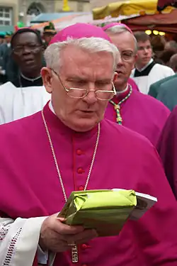 He then joined the Roman Curia as first secretary and then, before the end of 1984, study assistant of the Congregation for the Doctrine of the Faith with the role of personal secretary to the prefect of the congregation, Cardinal Joseph Ratzinger, the future Pope Benedict XVI.[1][2] He was given the rank of Chaplain of His Holiness on 17 March 1989 and that of Honorary Prelate of His Holiness in 1999.[1]