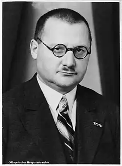 The Allies' initial plans for the Denazification of Germany in 1945 were diluted when faced with the practicalities of creating a functioning German state. Unlike Wintersberger, Hartinger had not joined the Nazi party before the war but by 1945 over 90% of lawyers and all judges were party members.[7] The practicality of running the judicial system won out over the principle of Denazification, especially when it was entrusted to new German state. So in the post-war German legal system and in the Bavarian State Cabinet, Hartinger still had to deal with many personalities who had been enthusiastic Nazis and others who had conformed with the regime.[8]