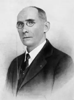 Thoburn was born in Bellaire, Ohio,[2] the son of Thomas C. and Mary Eleanor (née Crozier) Thoburn. Thomas and Mary were both natives of Pennsylvania, and had lived near Pittsburgh. Thomas was a farmer and a Civil War veteran, who had been captured by the Confederate army, and spent several months in a prison camp before being paroled to return home. Thomas and Mary were married on September 26, 1865, a few days after Thomas was mustered out of the Union Army.[3] The family moved to Marion County, Kansas in 1871, where Joseph grew up and graduated from the Agricultural College in Manhattan in 1893, with a bachelor's degree in Agriculture.[a] In 1894, he married Caroline Conwell, who had been teaching at an academy in the Choctaw Nation, which was then in Indian Territory.