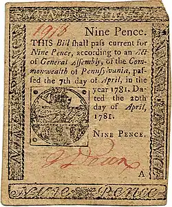 - ^ "Pennsylvania: April 20,1781". coins.nd.edu. Retrieved 2024-08-18.