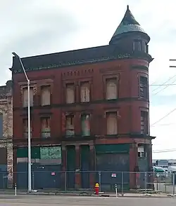 West side of Broadway Avenue in the Broadway Avenue Historic District, Lafer Brothers Building on the right