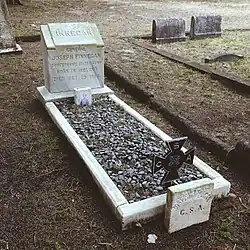 It was while living in Savannah that Finegan married his second wife, the widow Lucy C. Alexander, a Tennessee belle. They eventually settled on a large orange grove in Orange County, Florida.[17] Finegan died October 29, 1885, at Rutledge, his orange grove named after his late son in Orange (now Seminole) County, Florida.[18][19] According to the Florida Times Union, his death was the result of "severe cold, inducing chills, to which he succumbed after brief illness." The paper described him as "hearty, unaffected, jovial, clear-headed, and keen-witted." He was buried at the Old City Cemetery in Jacksonville.[6]